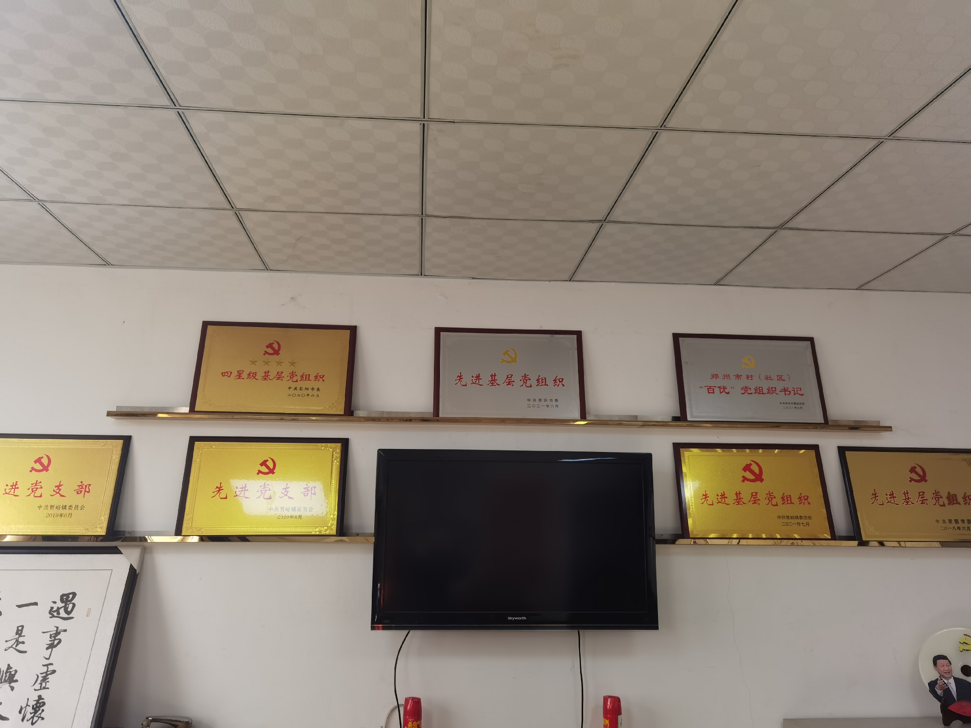 营造氛围,助推文明创建“添动力”。在前期多次沟通基础上,建投集团与郭岗村共同制作了“社会主义核心价值观”主题墙1面,精神文明宣传栏10块,并完善了党建宣传长廊和村史馆建设。“社会主义核心价值观”主题墙由金属底座和亚克力面板共同组成,整体大小约80平方,位于郭岗村村委后方的广场中央。上方呈现着“24字”核心价值观内容,清晰醒目,成为扮靓村容村貌的风景线和展现文明风尚的“新名片”。精神文明宣传栏涵盖习近平新时代中国特色社会主义思想、深入贯彻落实党的二十大精神、弘扬优秀传统文化、倡树文明新风等内容。党建宣传长廊和村史馆是由建投集团在上轮结对帮扶中建设完成并已投入使用,本轮帮创进一步完善了巩固脱贫攻坚成果展示、“五星支部”创建等内容。
