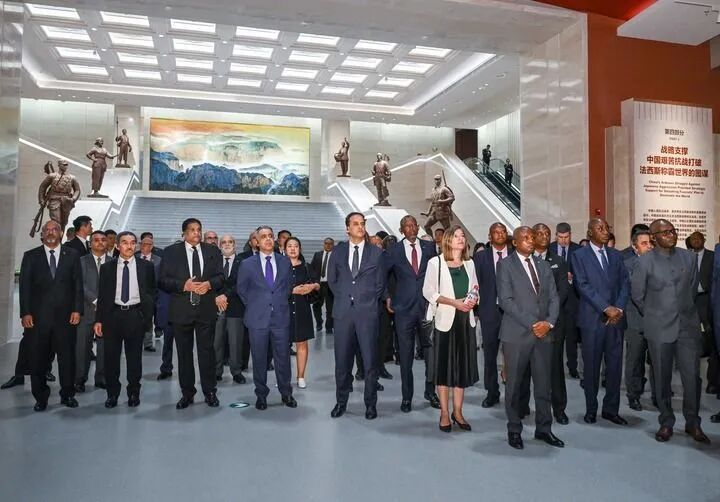 驻华外交官来到中国人民抗日战争纪念馆,参观纪念中国人民抗日战争暨世界反法西斯战争胜利80周年主题展览《为了民族解放与世界和平》(2025年7月17日摄)。新华社记者 陈晔华 摄