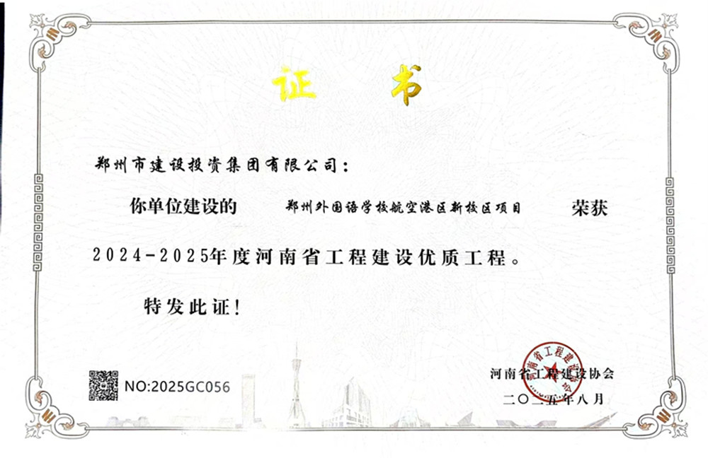 近日,由韦德·官方端入口代建的郑州外国语学校航空港区新校区项目荣获2024-2025年度河南省工程建设优质工程荣誉。