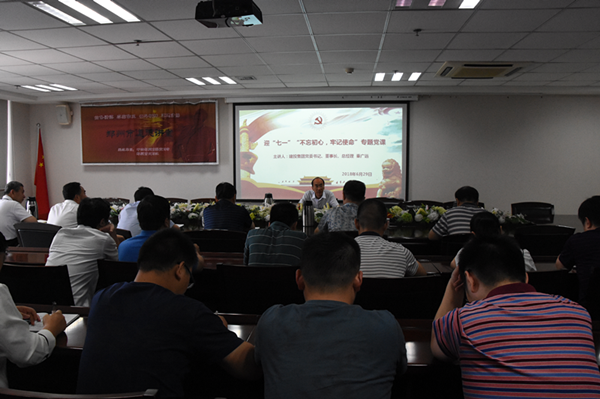 秦总以《不忘初心 牢记使命 努力创造无愧于新时代要求的新业绩》为题,从总书记“七一”重要讲话告诉了我们什么;学习总书记“七一”重要讲话,我们要深悟什么;落实总书记“七一”重要讲话,我们要做什么三个方面进行授课。一是总书记重要讲话告诉我们“勿忘过去”,到什么时候都不要忘了曾经走过的路。“珍惜现在”,到什么时候都不要停止前进的脚步。“放眼未来”,到任何时候都不能忘记为什么而出发。“植根人民”,到任何时候都不要忘了要依靠谁、为了谁。二是通过学习,我们应对“不忘初心”、“文化自信”、“马克思主义进一步中国化、时代化、大众化”“中国方案”等几个新观点新论断加深感悟和理解。三是作为一名共产党员,我们要用奋进来诠释信念,靠行动来担起历史使命,坚定信念,忠诚于党;学习榜样,修身律己;牢记职责,敢于担当,为实现中华民族伟大复兴贡献自己的一份力量!